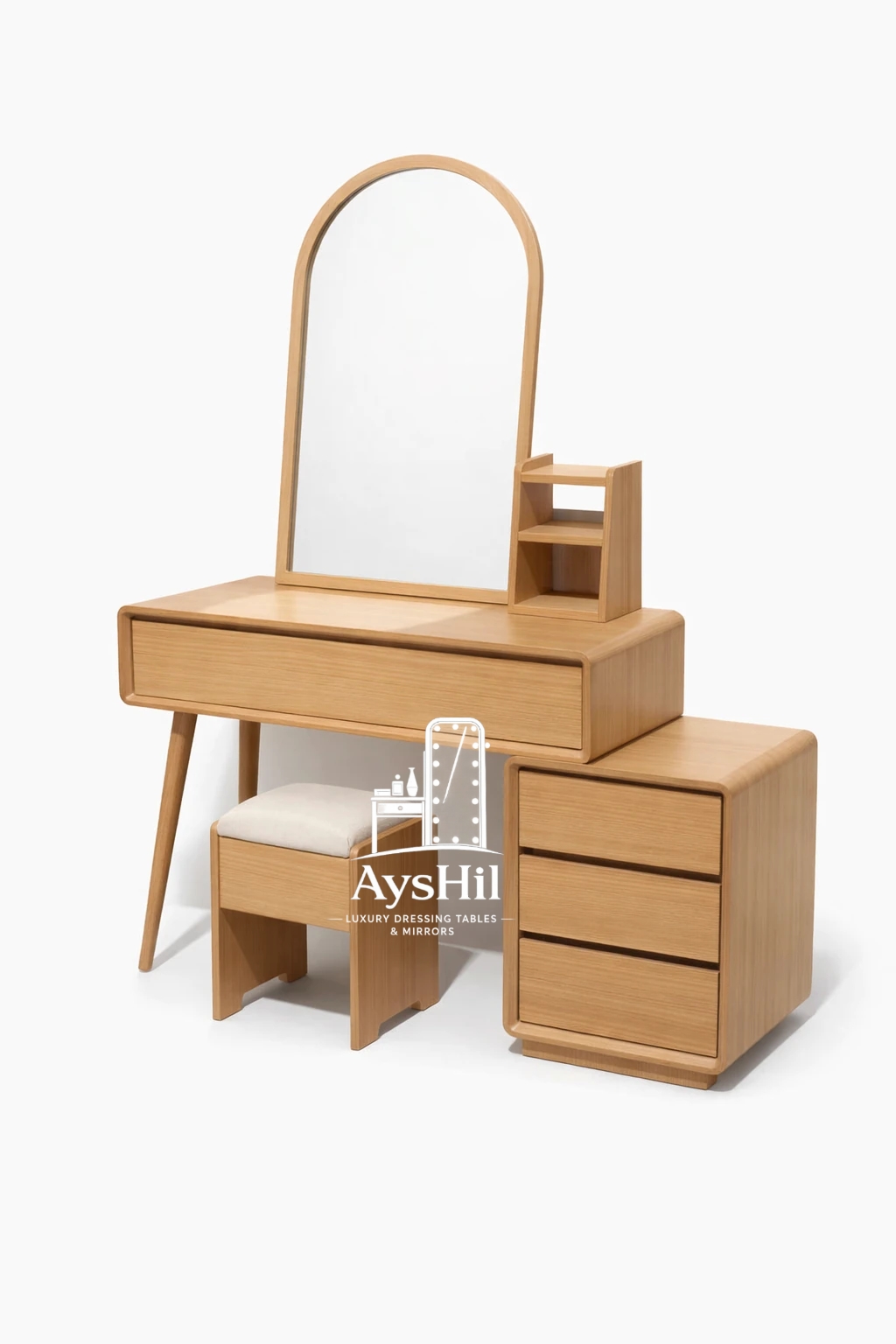 میزهای آرایش آیشیل با استفاده از MDF درجه یک، روکش چوب طبیعی، یراقآلات باکیفیت و آینههای مدرن ساخته میشوند و علاوهبر زیبایی ظاهری، دوام و کارایی بالایی دارند. وجود کشوهای جادار، کشو مخفی مگنتی و مدلهای مناسب اتاق خواب عروس، این محصولات را به انتخابی ایدهآل برای فضاهای امروزی تبدیل کرده است.