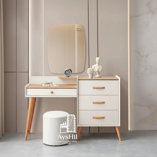 خرید میز آرایش آروشا MDF با روکش طبیعی راش و بلوط – طراحی دو تکه مدرن