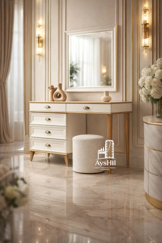 خرید میز آرایش لاکچری چوبی و MDF یکی از مهم‌ترین انتخاب‌ها برای تکمیل دکوراسیون اتاق خواب‌های مدرن و لوکس است. در دسته‌بندی میز آرایش آیشیل، مجموعه‌ای از میز آرایش‌های مدرن، خاص و تولیدی را مشاهده می‌کنید که با طراحی اختصاصی و کیفیت ساخت بالا تولید شده‌اند.