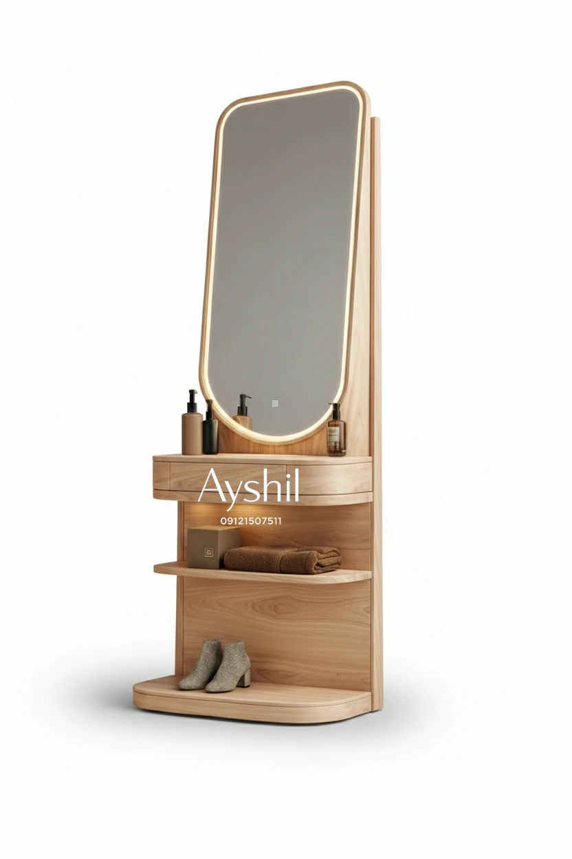 آینه قدی لوکس چوبی آیشیل مدل رُزالین | کشوی جادار پارتیشنبندی | روکش طبیعی راش