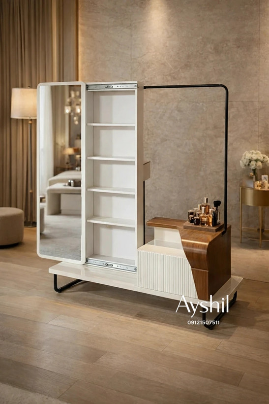 در بخش پشتی آینه، فضای **طبقهبندیشده مخفی** طراحی شده که امکان نظمدهی حرفهای به لوازم آرایشی، اکسسوریها و وسایل شخصی را فراهم میکند. همچنین وجود **رگال فلزی مقاوم برای آویز لباس**، این آینه قدی کشودار را به گزینهای ایدهآل برای اتاق خواب، جهیزیه عروس و خانههای مدرن تبدیل کرده است.