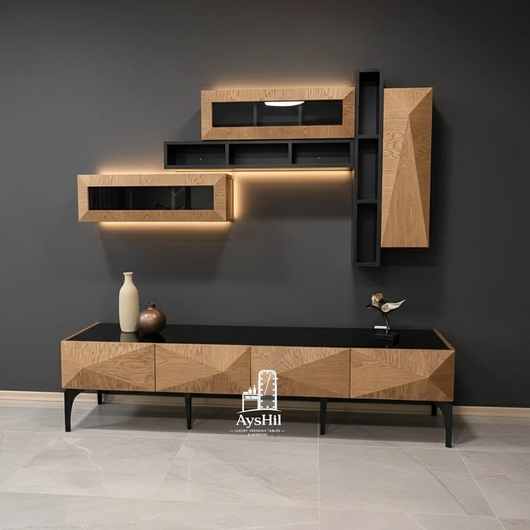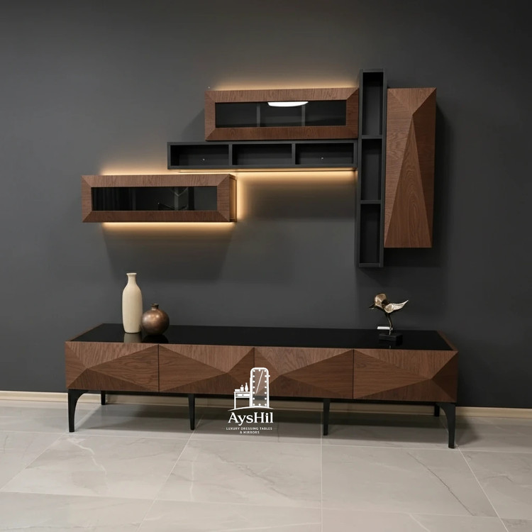 باعث شده این میز تلویزیون در برابر **رطوبت، فشار و استفاده طولانیمدت** دوام بسیار خوبی داشته باشد. رنگکاری حرفهای و اجرای دقیق جزئیات، حس یک محصول **لوکس و باکیفیت واقعی** را منتقل میکند.