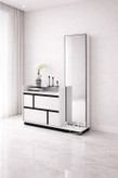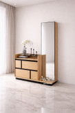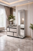 این آینه از **MDF استاندارد و درجه یک** ساخته شده و در آن از **یراقآلات روز بازار** استفاده شده است تا دوام، استحکام و عملکرد روان کشوها در طول زمان تضمین شود.