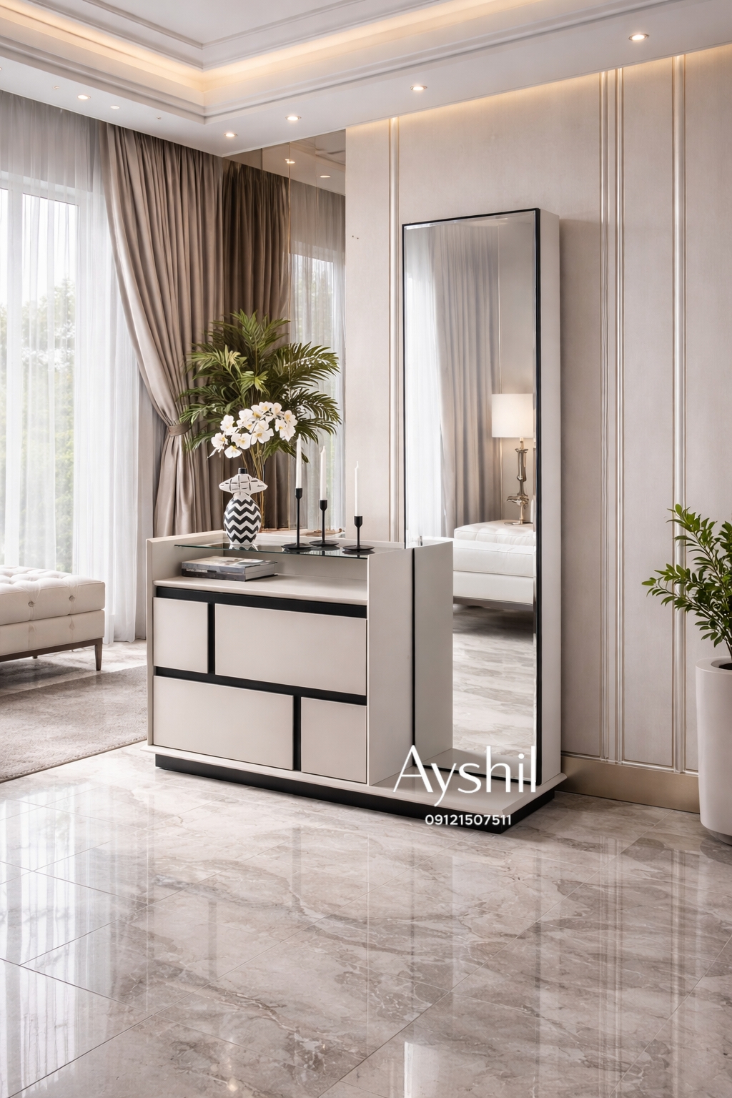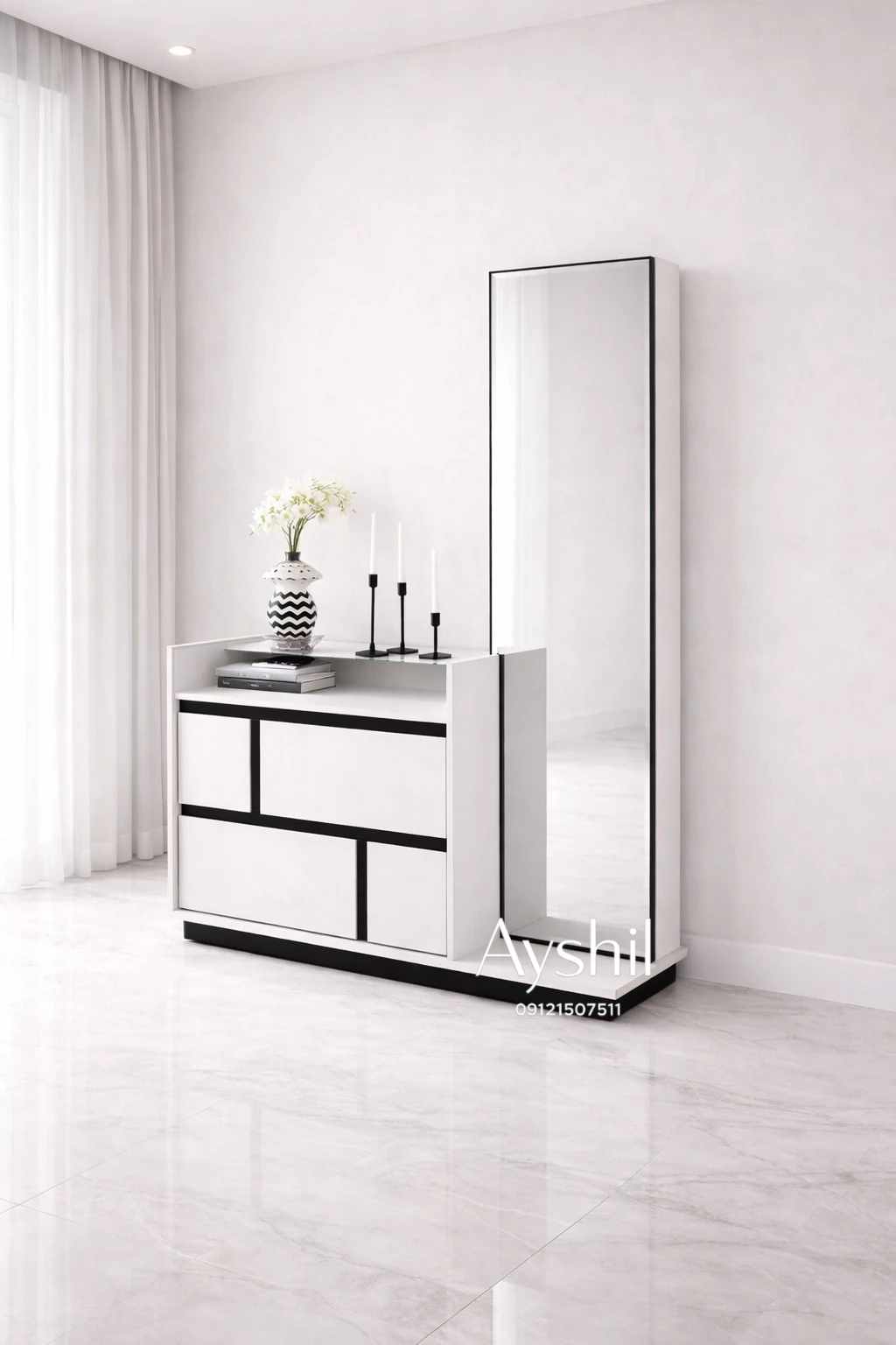 - آینه قدی مدرن با کشو جادار