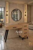خرید میز آرایش مدل وینرال چوبی لاکچری با آینه گرد | MDF درجه یک روکش چوب راش