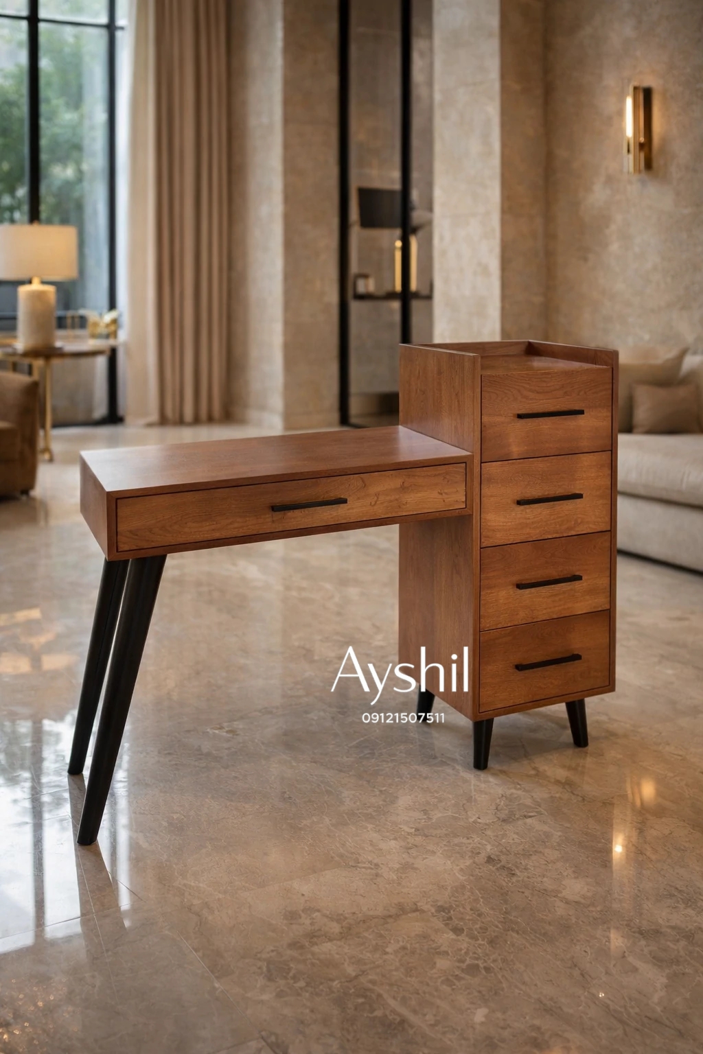 - میز آرایش MDF درجه یک با روکش چوب طبیعی