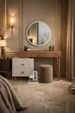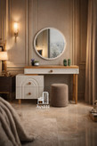 خرید میز آرایش چوبی مدل اکسیر | میز آرایش MDF با روکش طبیعی راش و بلوط + آینه گرد