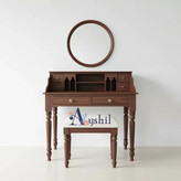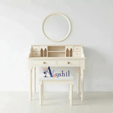 خرید میز آرایش مدل آیلین با آینه گرد و طراحی کلاسیک طبیعی
