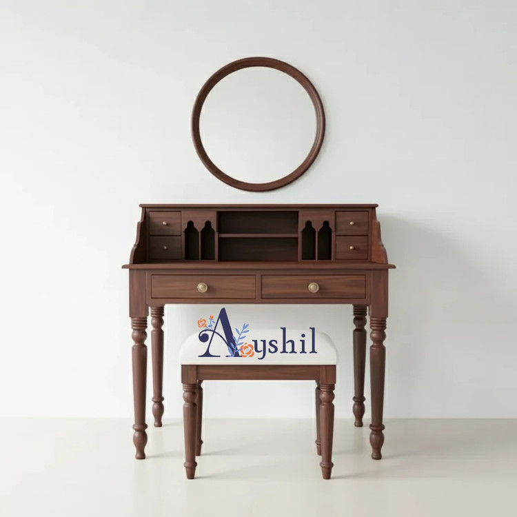 اگر به دنبال **میز آرایش چوبی با آینه گرد، کشو جواهرات، طراحی حرفهای و دوام بالا** هستید که هم از نظر ظاهری لوکس باشد و هم از نظر کاربری کاملاً کاربردی، **میز آرایش مدل آیلین** انتخابی هوشمندانه و مطمئن برای اتاق خواب شماست.