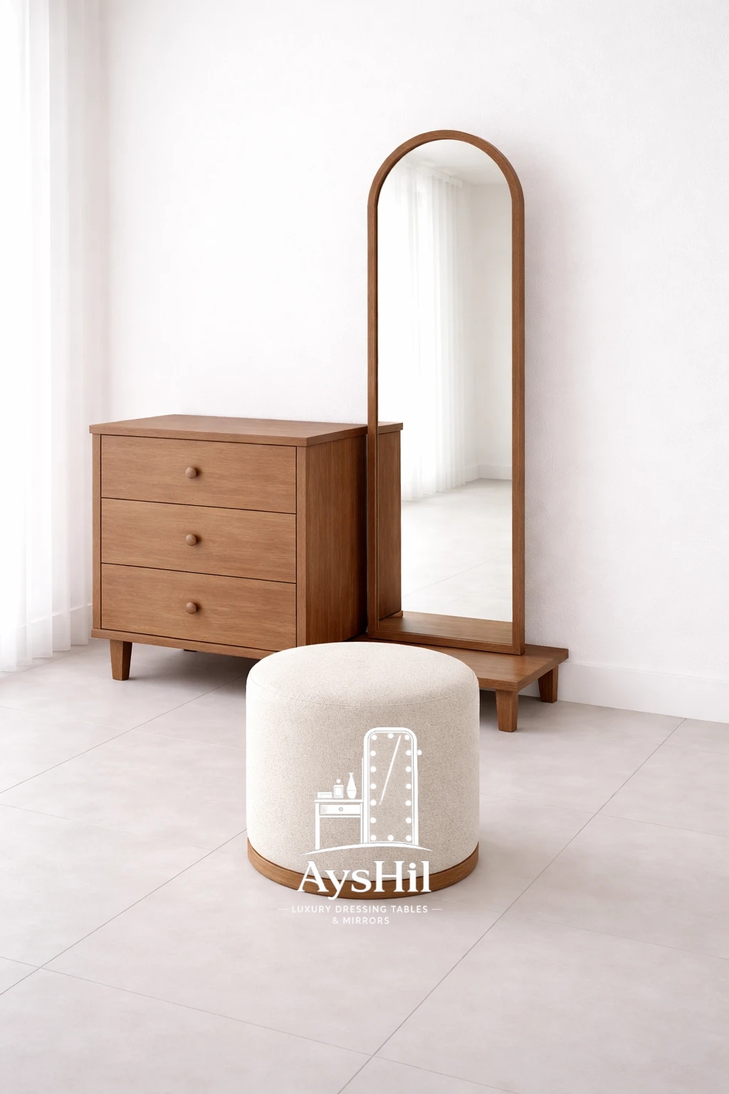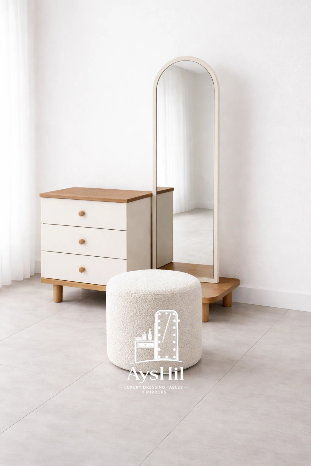 قیمت و خرید میز آرایش لاکچری مدل ویکتوریا با آینه قدی | چوب طبیعی راش، بلوط و گردو
