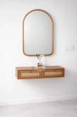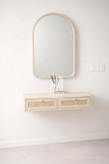 یکی از جذابترین بخشهای طراحی این میز آرایش، استفاده از حصیر بامبو چوبی در قسمت دربها است. این جزئیات باعث شده محصول از یک میز ساده فراتر برود و به یک عنصر دکوراتیو خاص در اتاق خواب تبدیل شود. ترکیب چوب طبیعی و حصیر بامبو در حال حاضر یکی از ترندهای محبوب در طراحی دکوراسیون داخلی محسوب میشود.