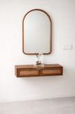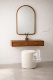 خرید میز آرایش دیواری چوبی والرین | طراحی مدرن، آینهدار + پاف، مناسب فضاهای کوچک