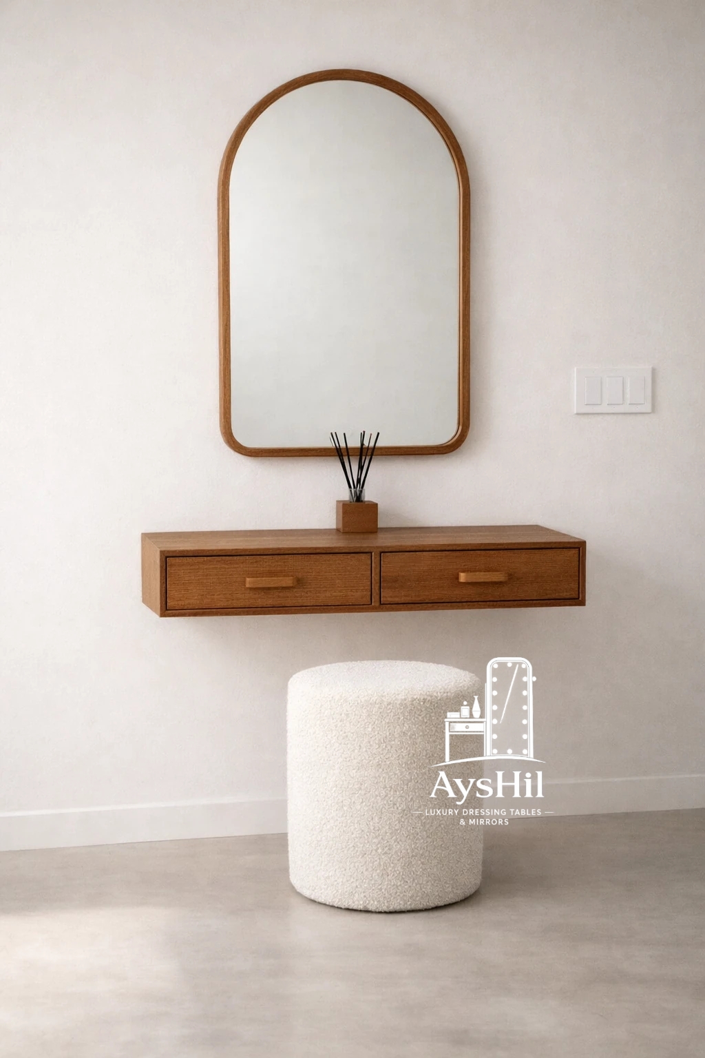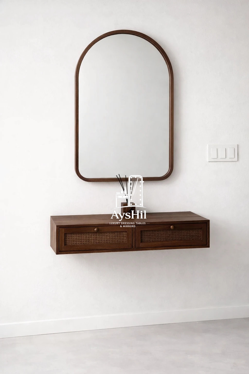 در مجموع اگر به دنبال خرید میز آرایش دیواری چوبی مدرن با آینه هستید که طراحی شیک، کیفیت ساخت بالا و ابعاد کمجا داشته باشد، میز آرایش دیواری والرین میتواند یکی از بهترین انتخابها برای اتاق خواب شما باشد. ترکیب چوب طبیعی، حصیر بامبو، آینه زیبا و پاف پارچهای در کنار امکان سفارشی سازی، این محصول را به یک گزینه خاص و متفاوت در میان میزهای آرایش دیواری بازار تبدیل کرده است.
