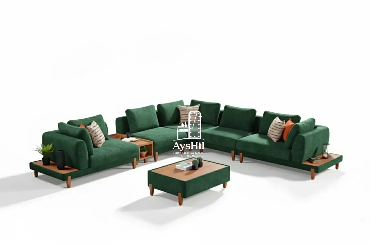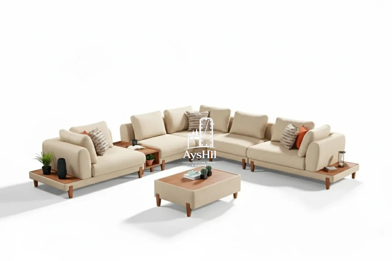 از نظر طراحی نیز مبل ال ترنم یک **مبل ال مدرن و لوکس برای دکوراسیون امروزی** محسوب میشود. وجود فضای دکوری در دو طرف مبل و قسمت میانی، علاوه بر زیبایی، امکان قرار دادن اکسسوریهای دکوراتیو، کتاب یا وسایل تزئینی را فراهم میکند و جلوه خاصی به فضای نشیمن میدهد.