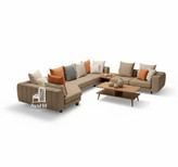 اضافه شدن **باکس دکوری کاربردی** و **مبل تکی چوب راش**، ارزش خرید را به شدت بالا میبرد. چوب راش در مبل تکی، یک امضای زیباییشناختی لوکس است که نشان میدهد سازنده در طراحی ست، از هیچ متریالی کم نگذاشته است. همچنین، استفاده از **الیاف خالص در کوسنها** (به جای خردهابر) تضمینکننده فرم حجیم و مجلل کوسنها در طولانیمدت است.