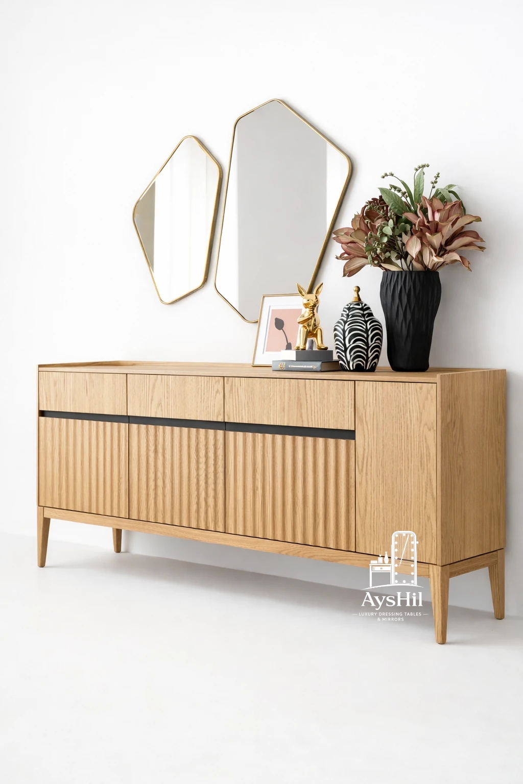 خرید آینه کنسول چوبی لوکس مدل رکورد | MDF روکش طبیعی راش، بلوط و گردو با آینه اردکان
