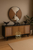 آینه کنسول مدل آیسل ترکیبی از چوب و ام دی اف با روکش طبیعی چوب بلوط و رنگ مشکی جذابیت خاصی در خود ایجاد کرده که در عین سادگی زیبایی منحصر به فردی به منزل شما خواهد بخشید.استفاده از حصیر بامبو چوبی در این کار باعث قشنگی دو چندان کارشده ویک آینه خاصی که ترکیبی از روکش بلوط وآینس.ابعاد و اندازه و رنگ بندی این کار قابل تغییر طبق سلیقه مشتری قابل ساخت میباشد.متریال درجه یک و استاندارد بسته بندی بصورت پک حباب دار بوده و ارسال به سراسر ایران عزیزمان رو هم داریم