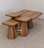 ست میز چندسطحی آیشیل با الهام از هندسه معاصر، نقطهی کانونی دلنشینی برای فضای نشیمن یا لابی شما میسازد. سه میز با ارتفاع و ابعاد متفاوت بهصورت آبشاری روی هم جای میگیرند تا هم جلوهای مجسمهگون خلق کنند و هم بیشترین کاربری را در فضایی محدود ارائه دهند. نقش و نگار طبیعی چوب در کنار پرداخت ظریف سطوح، حس گرما و اصالت را به یک طراحی مدرن و مینیمال پیوند میزند.