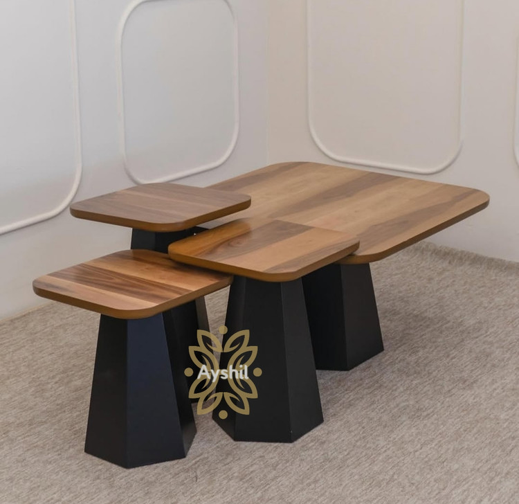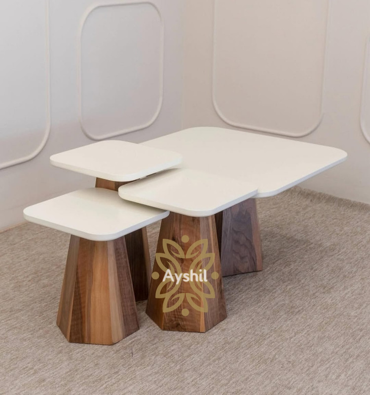 - طراحی چندسطحی هوشمند: سه میز در ابعاد متفاوت، قابل استفاده هم بهصورت تو در تو و هم بهصورت مجزا