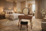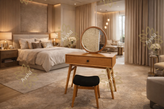 *🔸 **ابعاد و اندازه:** هر فضایی منحصر به فرد است. ابعاد و عمق این میز آرایش میتواند با دقت میلیمتری، مطابق با هندسه اتاق خواب شما تنظیم شود.