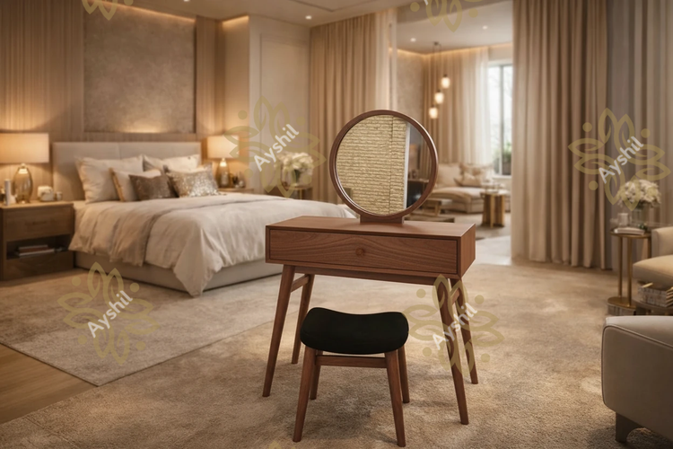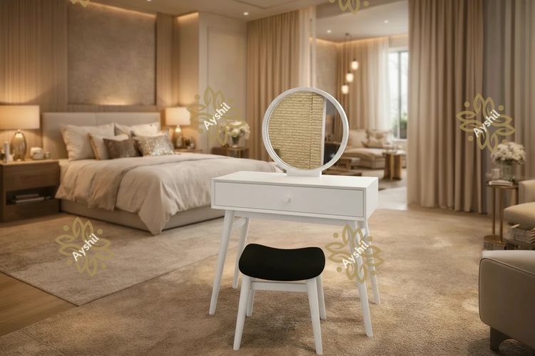 *🔸 **رنگبندی سلیقهای:** از طیف غنی رنگ گردویی گرفته تا رنگهای پوششی خاص مانند سفید مات یا طوسی لاکچری؛ انتخاب رنگ بدنه و پایهها کاملاً در اختیار شماست تا میز آرایش، هماهنگی بینقصی با پالت رنگی فضای داخلیتان پیدا کند.