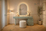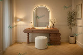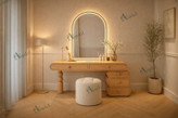 *🔸 **آینه قوسی بک لایت:** آینهای با فرم کمانی، نه تنها به صورت ارگونومیک فضای بیشتری را پوشش میدهد، بلکه نورپردازی بک لایت آن، نوری ایدهآل برای آرایش فراهم کرده و در شب، به یک منبع نور محیطی فوقالعاده شیک تبدیل میشود.