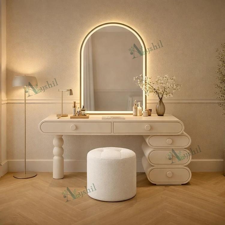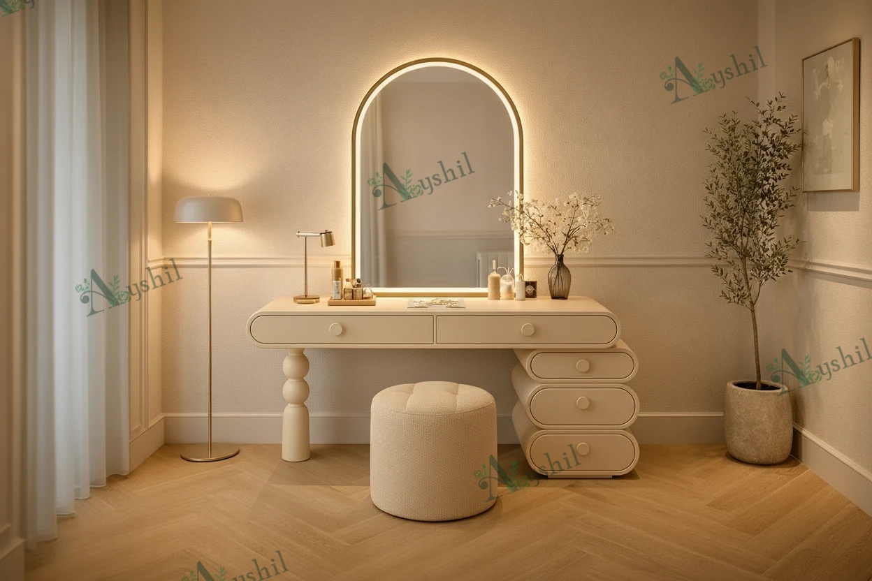 *🔸 **آپشن شخصیسازی (Customization):** توانایی انتخاب رنگبندی طبق سلیقه شخصی، یک امتیاز فوقالعاده لوکس است. این ویژگی به مشتری اجازه میدهد تا میز آرایش خود را به صورت یکپارچه با بقیه دکوراسیون اتاق، نظیر پردهها، روتختی یا کاغذ دیواری، هماهنگ کند.