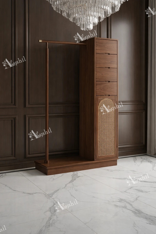 *🔸 **جایگاهیابی:** این رگال نه تنها در اتاق خوابهای مستر، بلکه در ورودیها (به عنوان جایگاه پالتو و کیف)، یا حتی در فضاهای اداری لوکس (برای نگهداری کت و کاپشن) نیز کاربرد دارد.