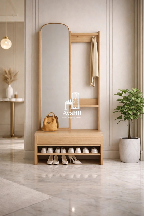 🔸طراحی مینیمال و خطوط ساده در کنار روکش طبیعی چوب راش، جلوهای لوکس و گرم به فضا میبخشد. آینه قدی با ابعاد استاندارد، دید کامل و بدون اعوجاج ارائه میدهد و به بزرگتر دیده شدن فضای ورودی یا اتاق کمک میکند. این ویژگی، ماهتیسا را به انتخابی ایدهآل برای خانههای مدرن و شیک تبدیل کرده است.