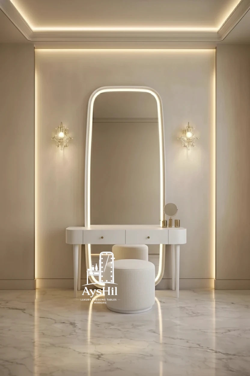 آینه قدی مدل پرنسا با فرم خاص و خطوط نرم، باعث **بزرگتر دیده شدن فضا** و افزایش نور محیط میشود. این آینه علاوه بر استفاده آرایشی، یک انتخاب عالی برای استایلینگ و چیدمان حرفهای اتاق خواب محسوب میشود.