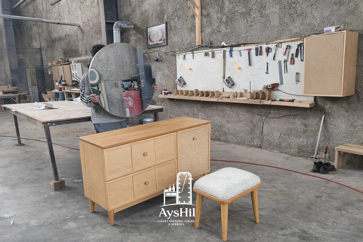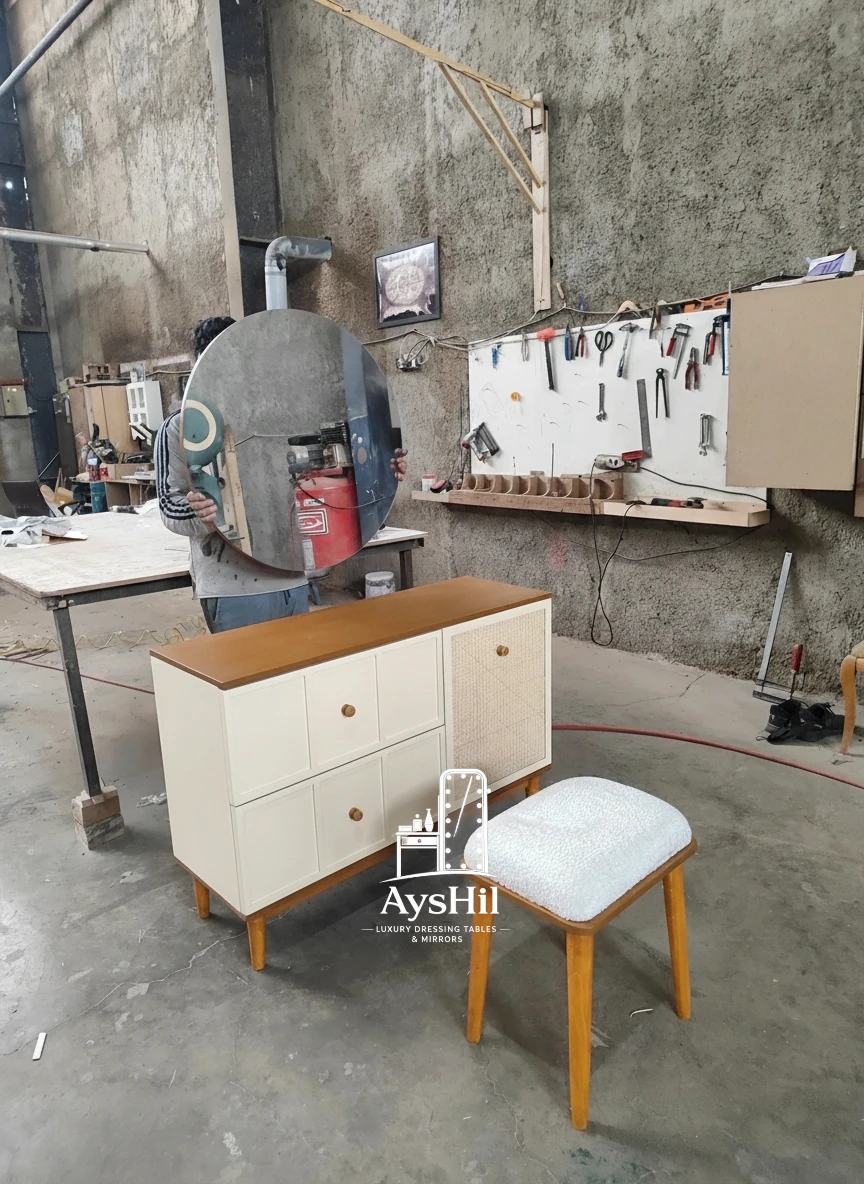 میز آرایش مدل شقایق نمونهای کمنظیر از ترکیب طراحی مدرن با متریال طبیعی و باکیفیت است که برای افرادی با سلیقه خاص و دکوراسیونهای لوکس طراحی شده است. این محصول نهتنها یک میز آرایش، بلکه یک عنصر دکوراتیو شاخص در فضای اتاق خواب به شمار میآید.