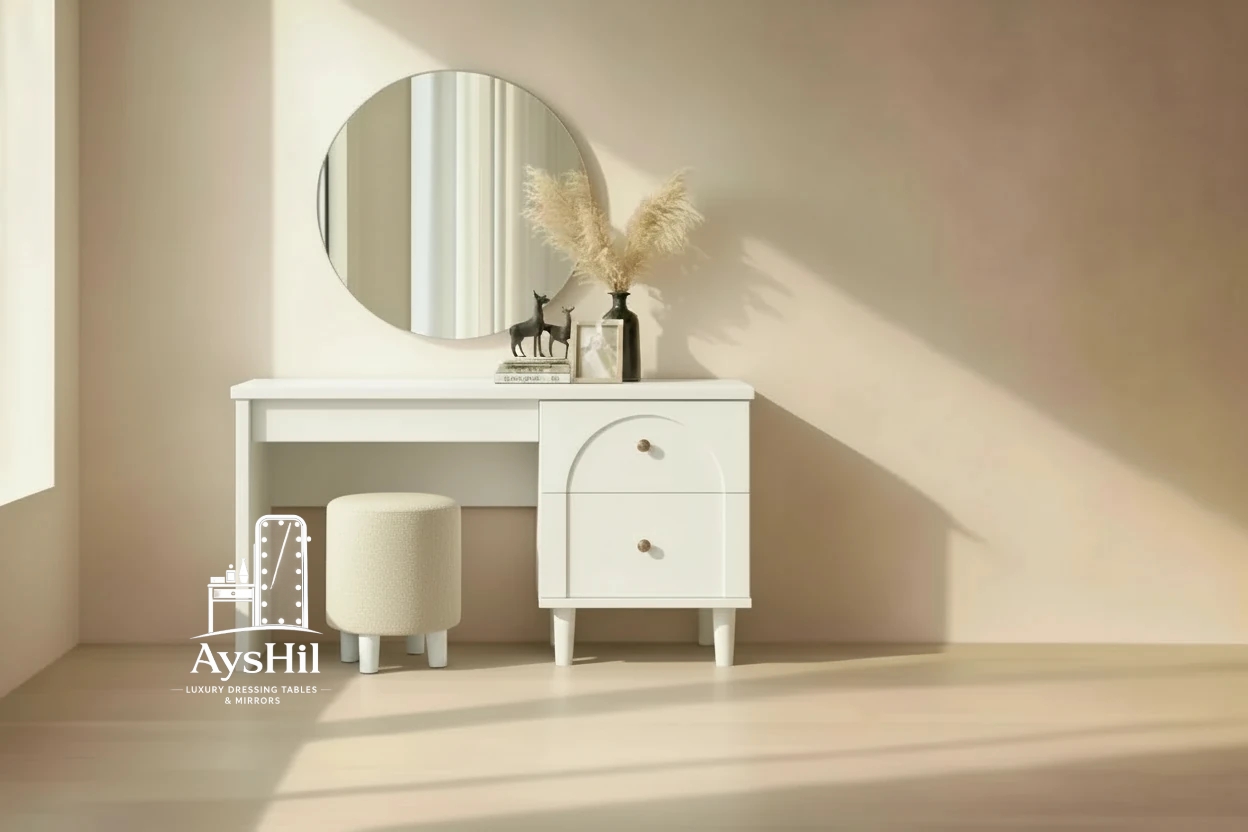 | **خرید میز آرایش مدرن آینه گرد ۷۰ سانت** | ترکیب سبک، ابعاد دقیق و عمل خرید |