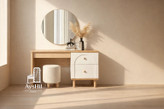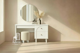 * **پاف گرد پارچهای لوکس:** یک **پاف گرد پارچهای** با طراحی ارگونومیک، همراه این میز ارائه میشود که راحتی شما هنگام آرایش را تضمین میکند و جلوهای مدرن به دکوراسیون میبخشد.