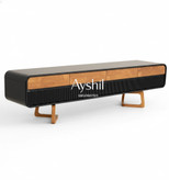 میز تلویزیون مدل سالونی لوکس | MDF با روکش طبیعی چوب راش | سفارشی در ابعاد ۱۸۰، ۲ و ۲.۵ متر