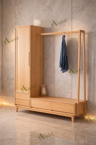 آینه قدی چوبی مدرن با رگال لباس و جاکفشی جادار مدل ماهتیسا