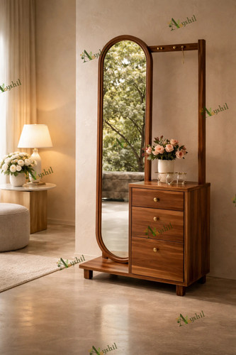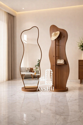 آینه قدی لوکس چوبی آیشیل مدل رُزالین | کشوی جادار پارتیشنبندی | روکش طبیعی راش