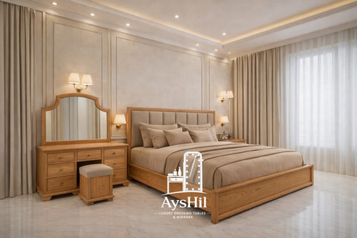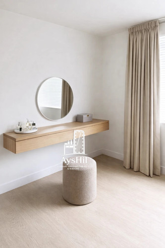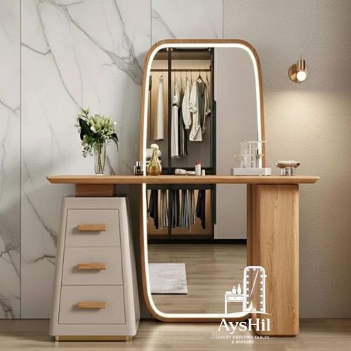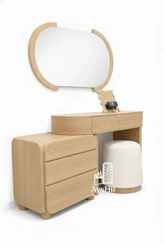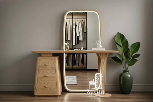 میز آرایش مدل رئال | لوکس با روکش طبیعی چوب راش و آینه قدی و طراحی سفارشی در رنگ و ابعاد دلخواه،طراحی مدرن و کیفیت ماندگار