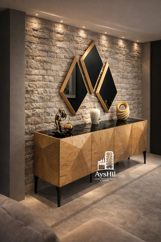 آینه کنسول مدل فیلون | آینه کنسول لاکچری MDF با روکش چوب راش سفارشی