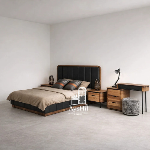 خرید سرویس خواب چوبی مدرن مدل افرا | سرویس خواب دو نفره لوکس با روکش طبیعی چوب راش