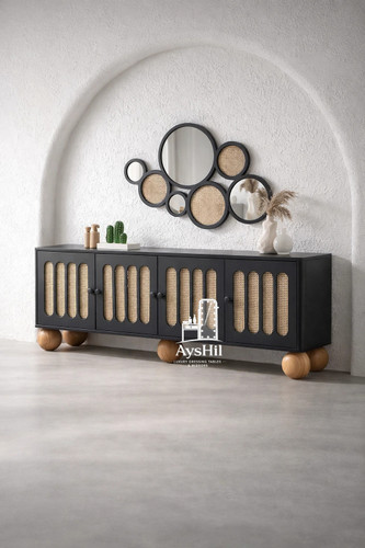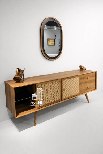 میز تلویزیون لوکس مدل آوین | حصیر بامبو طبیعی، چوب راش، سفارشیسازی ابعاد + ارسال فوری