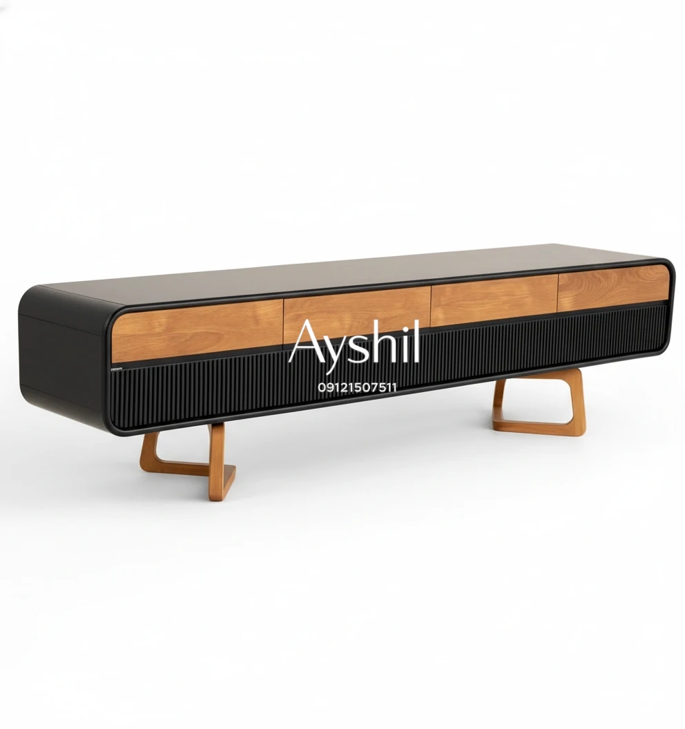 میز تلویزیون لاکچری مدل میلان | MDF درجه یک با روکش چوب طبیعی راش، کشودار و سفارشی