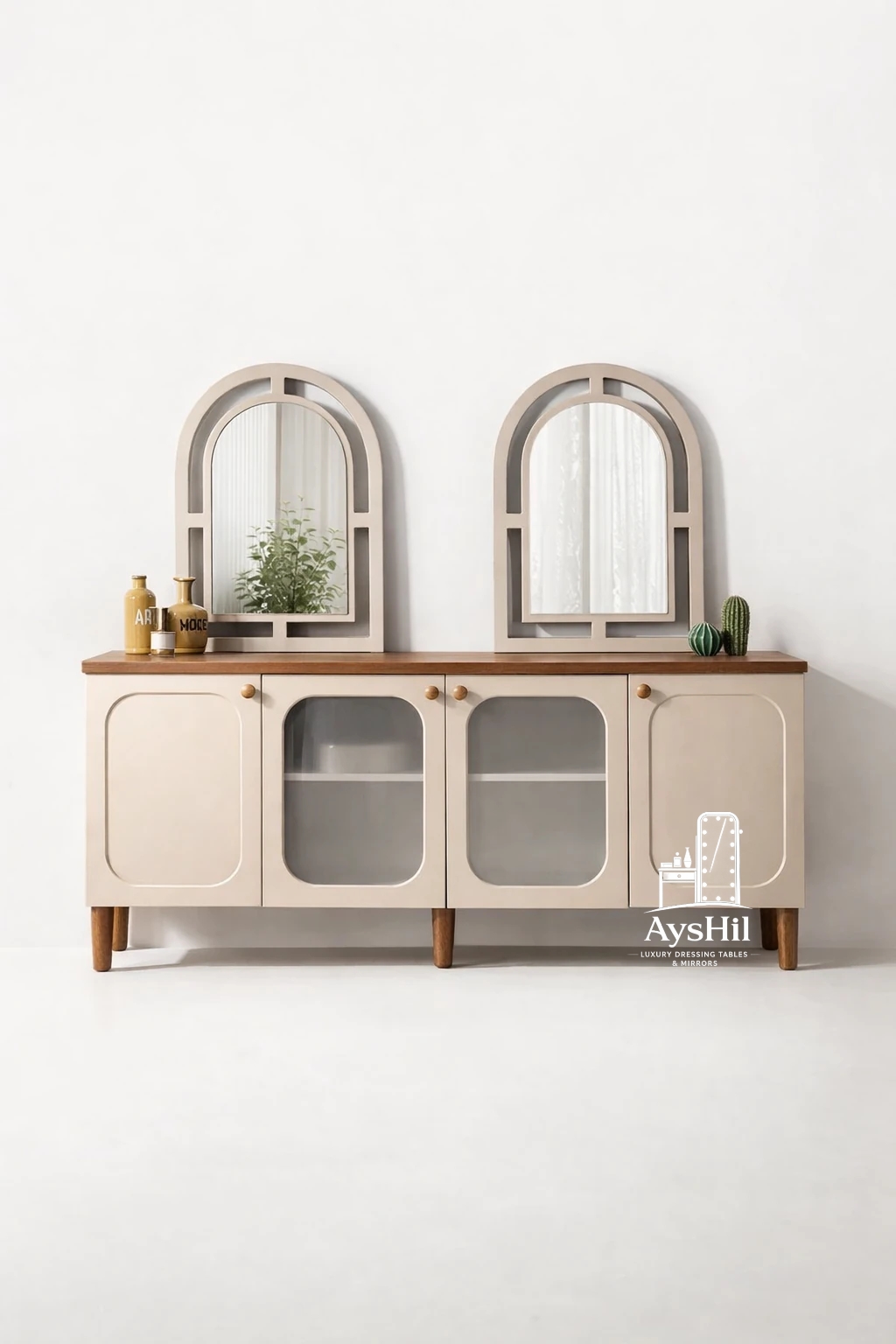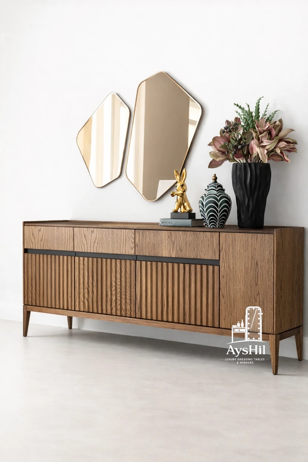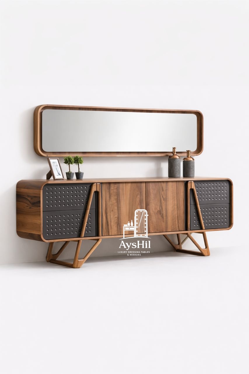 آینه کنسول چوبی لوکس مدل نارسیس | خرید آینه کنسول مدرن با ۴درب جادار و آینه دفرمه